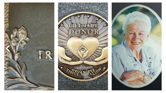 To create a truly personalized and unique tribute, we also offer a range of accents. These include bronze inlays, enameled steel inlaid pictures - which allows you to add a high-quality, detailed image of your loved one to their headstone or marker, or drilled pictures in porcelain or copper, which allow you to add a detailed, three-dimensional image.