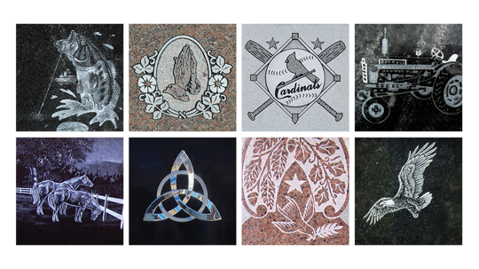 WMC offers a range of standard and custom art, from base design to accents. Standard options include popular designs such as flowers, crosses, and angels and more. Our craftspeople can also create custom art for your headstone or marker, such as a portrait of your loved one, a specific symbol or logo, or any other design that reflects their personality and interests.